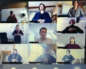 Nach kurzer Einführung zur in vielen Unterrichtsbereichen nun fast schon gängigen Online-Praxis nahm Berger den Teilnehmenden evtl. noch vorhandene Ängste. Mit seiner einfühlsamen Art ermutigte er die Studierenden aller Klassen - von den „Neuen“ mit gerade mal drei Dirigierstunden Erfahrung bis hin zu denen, die unmittelbar vor der Abschlussprüfung stehen - zur aktiven Teilnahme.